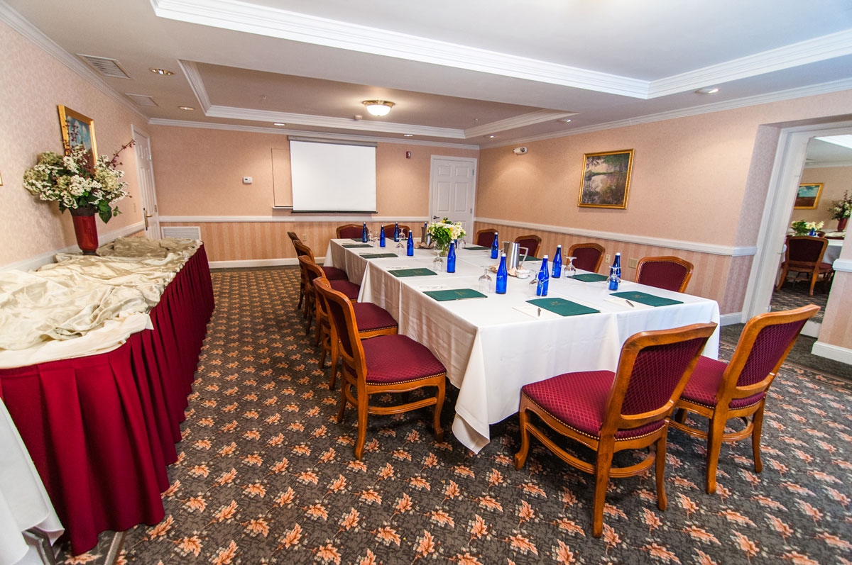 Located on the second floor of the Hotel, the Executive Boardroom (19×27 feet) is designed for corporate guests and their needs. All of our boardrooms are also available for corporate retreats and private dinners. This room can accommodate 22 guests depending on the setup.
