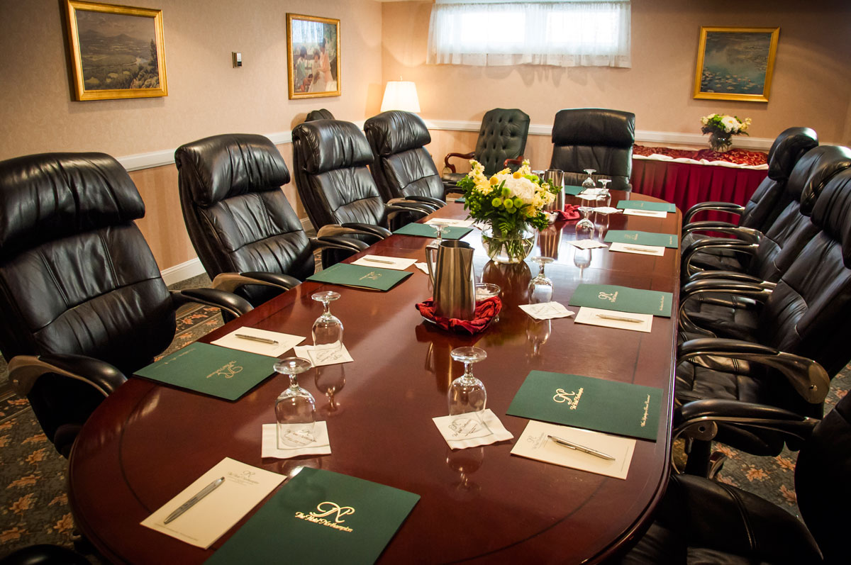Located on the first floor of the Hotel, the Innsiders Boardroom (18×28 feet) features a 12-foot solid cherry wood conference table with plush leather executive chairs, and is designed for corporate guests and their needs. All of our boardrooms are also available for corporate retreats and private dinners. This room can accommodate 12 guests at the conference table.